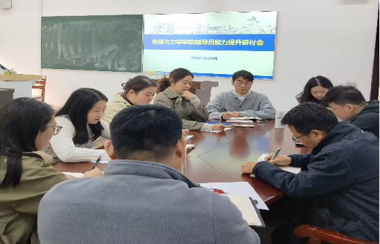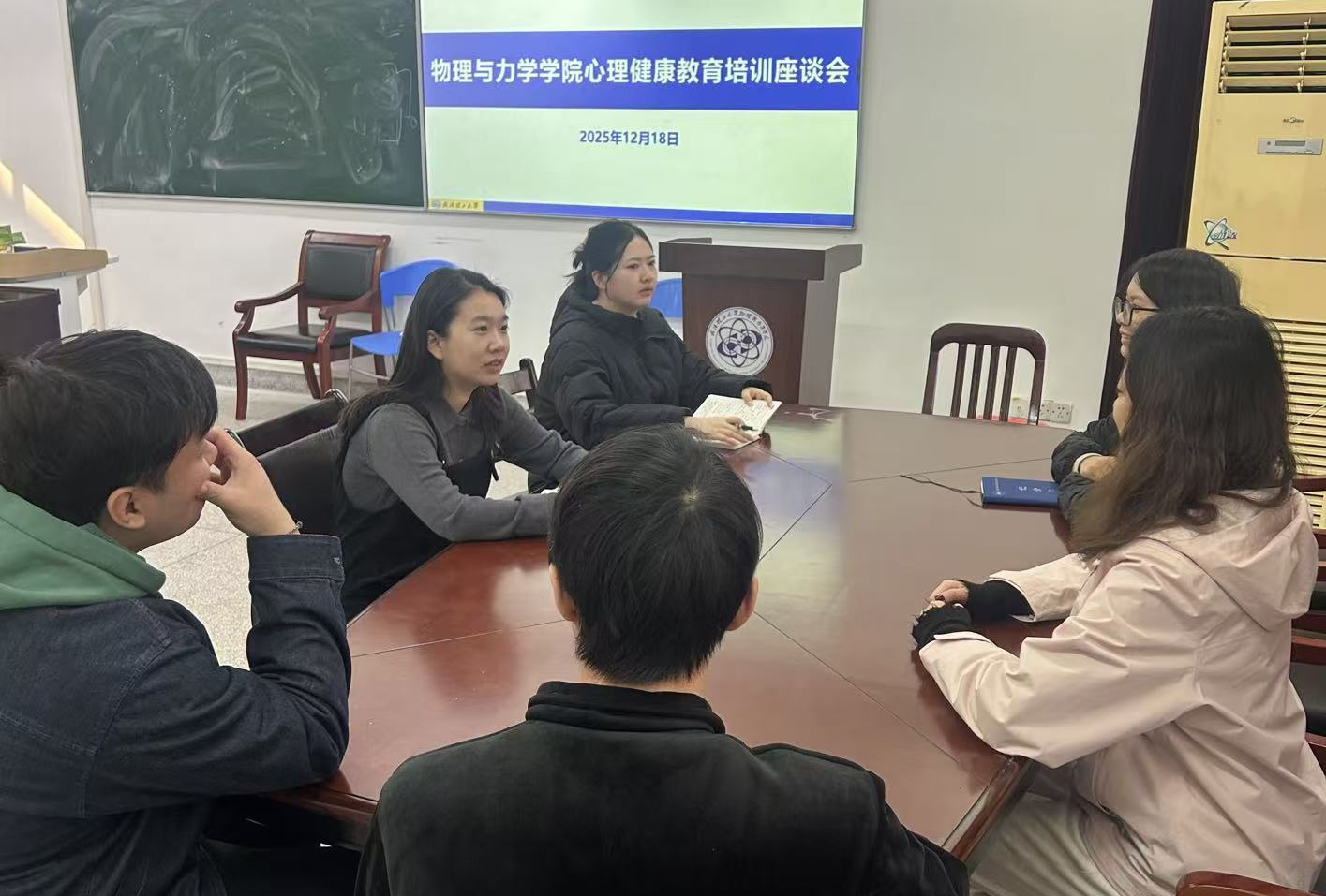 【服务助航】与心灵对话,为教育赋能——物理与力学学院心理健康教育培训座谈会圆满结束 发布时间:2025-12-18 近日,物理与力学学院在理苑楼316开展心理健康教育讲座培训交流会,学院党委副书记张明,教学办副主任韩雯欣、全体辅导员及部分班导师参加本次会议。本次会议围绕重点工作案例进行讨论和研究分析,并展望了面向下半年的班主任工作定位与“五个一”的工作要求,鼓励全体班主任老师不断提升履职能力,共同促进学生健康成长和学院育人工作的高质量发展。 编辑:张玗 审核:张明